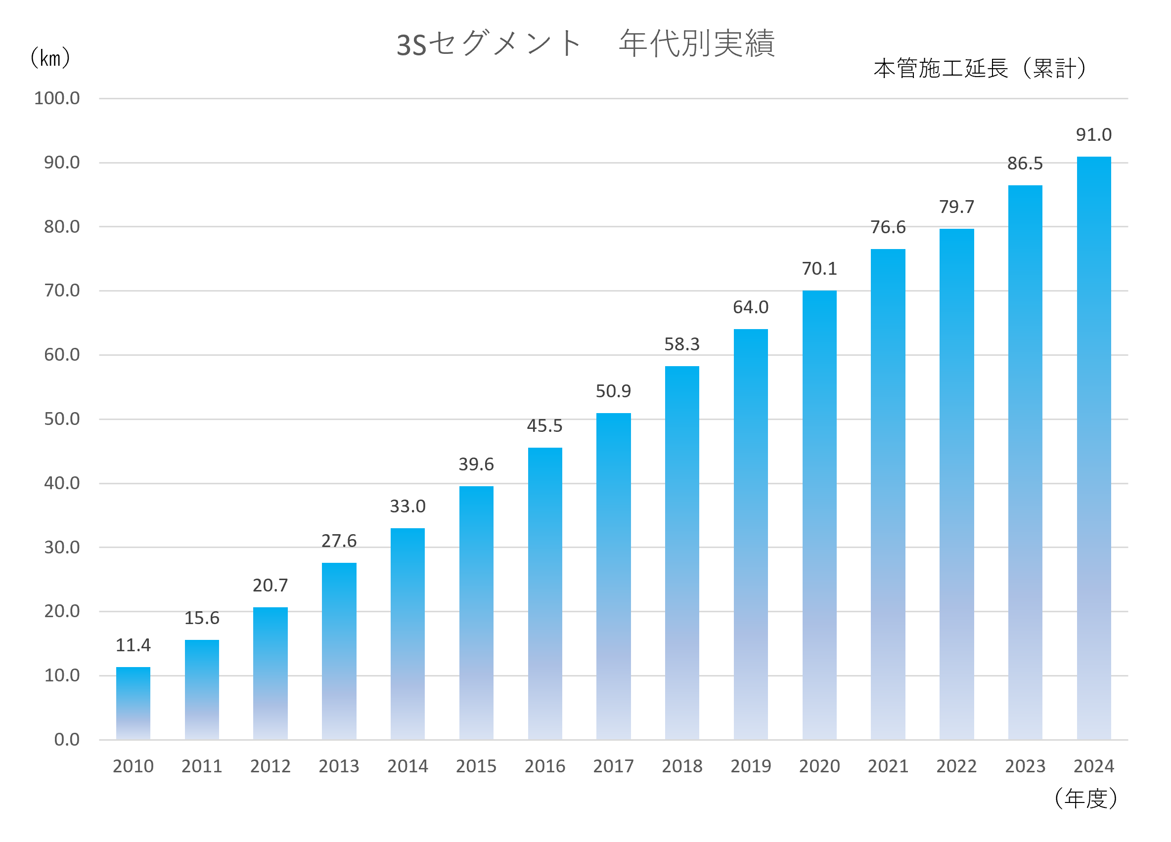 日本全国で3SICP技術協会の工法は広まっており、協会の設立から現在まで(2023年3月)、施工実績は伸び続けております。実績を支えるのは皆様からの厚いご信頼と、工法の優れた特性が評価された結果です。